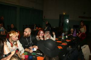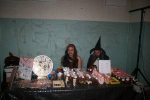 Au programme de la soirée : de la sangria en apéritif et du chili con carne, le tout accompagné par des divertissements variés. Lorsque le public a commencé à investir la salle à partir de 19h, tous s'étaient déjà passé le mot : enfants et adultes sont apparus grimés et costumés afin d'honorer les créatures de la nuit qui sommeillent en chacun d'eux. Le talentueux magicien Cyril Regard est passé de table en table pour offrir ses tours de magie devant une assistance ébahie par tant de prouesses. La médium Myriam a invité quiconque le désirait à connaître son avenir avec la lecture de cartes qui accouchait souvent de révélations troublantes. Sans oublier La Chocolaterie de Chloé qui proposait sur son stand des produits maison autour du chocolat. Mention spéciale à sa patte à tartiner chocolat/beurre de cacahuètes.